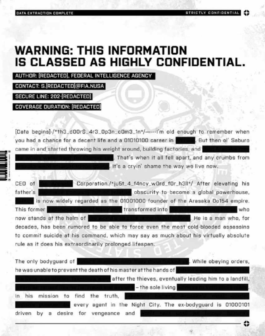 Ранее CD Projekt RED поделилась загадочным роликом, тайна которого до сих пор не решена. Судя по всему, актуальной на данный момент находкой фанатов остаются файлы НСША, предназначение которых ещё предстоит выяснить.