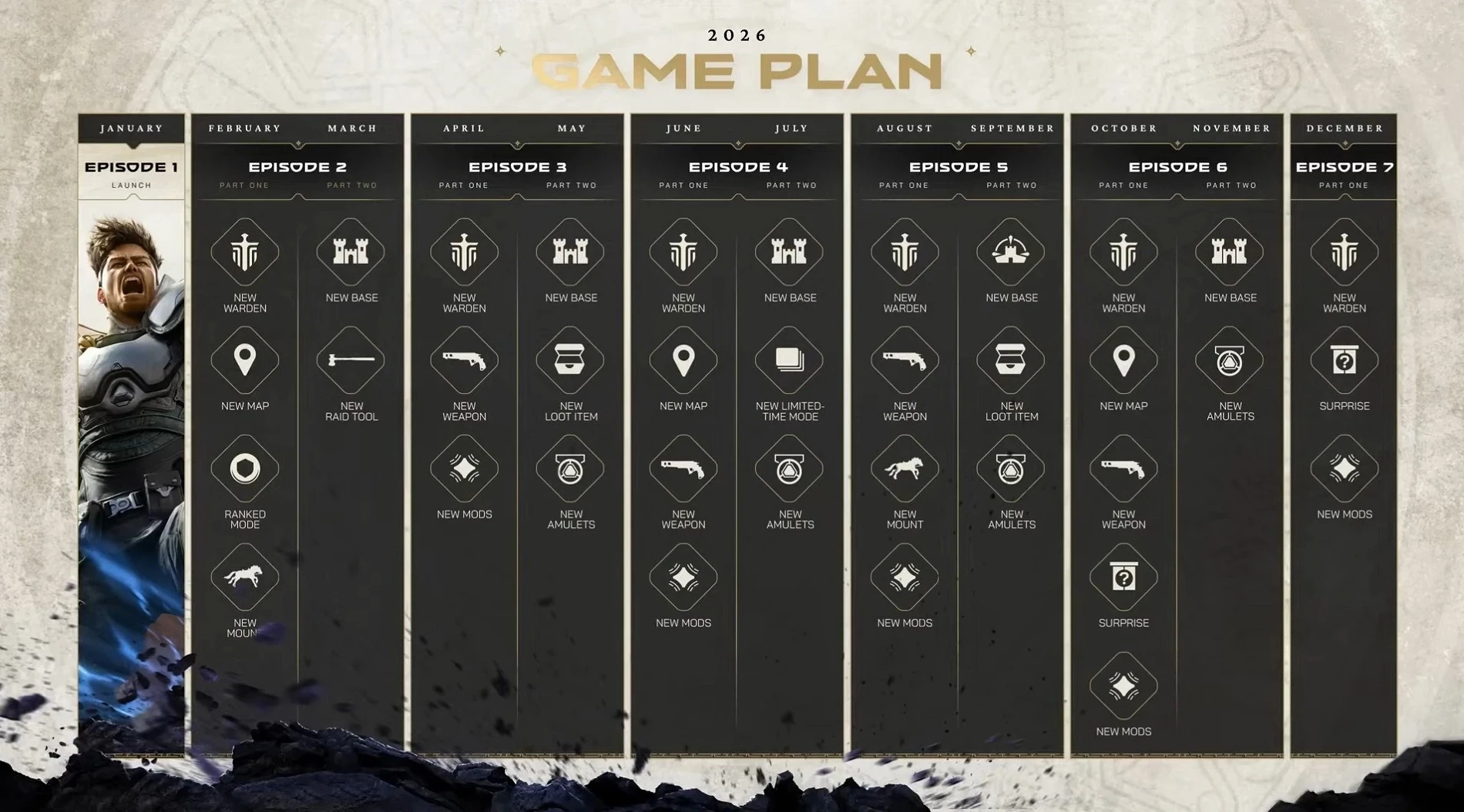 Всего для игроков готовят 7 эпизодов — 1-й уже доступен, а остальные поделены на две части. Среди новинок обещают новых героев, карты, режимы, оружие и не только. Есть также некие «сюрпризы», которые появятся под конец года.