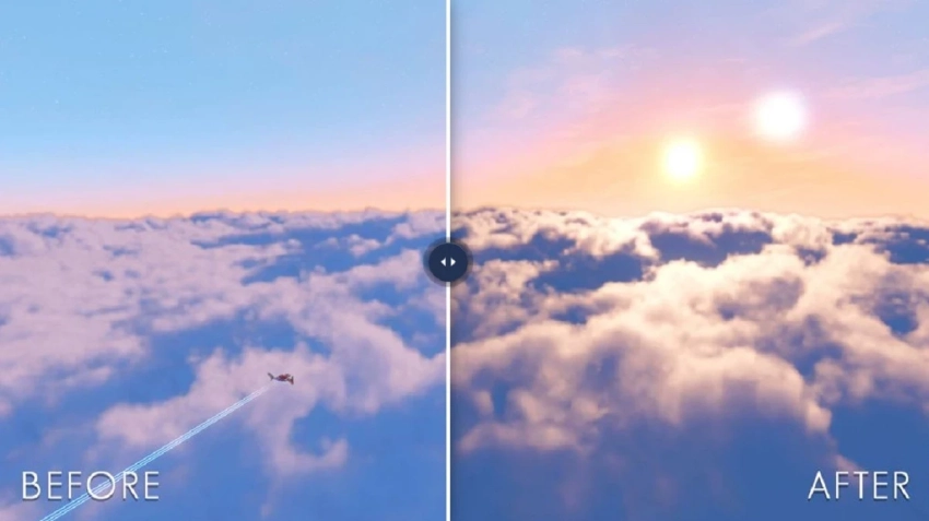 Облака в No Man’s Sky до обновления и после него. Источник: Hello Games