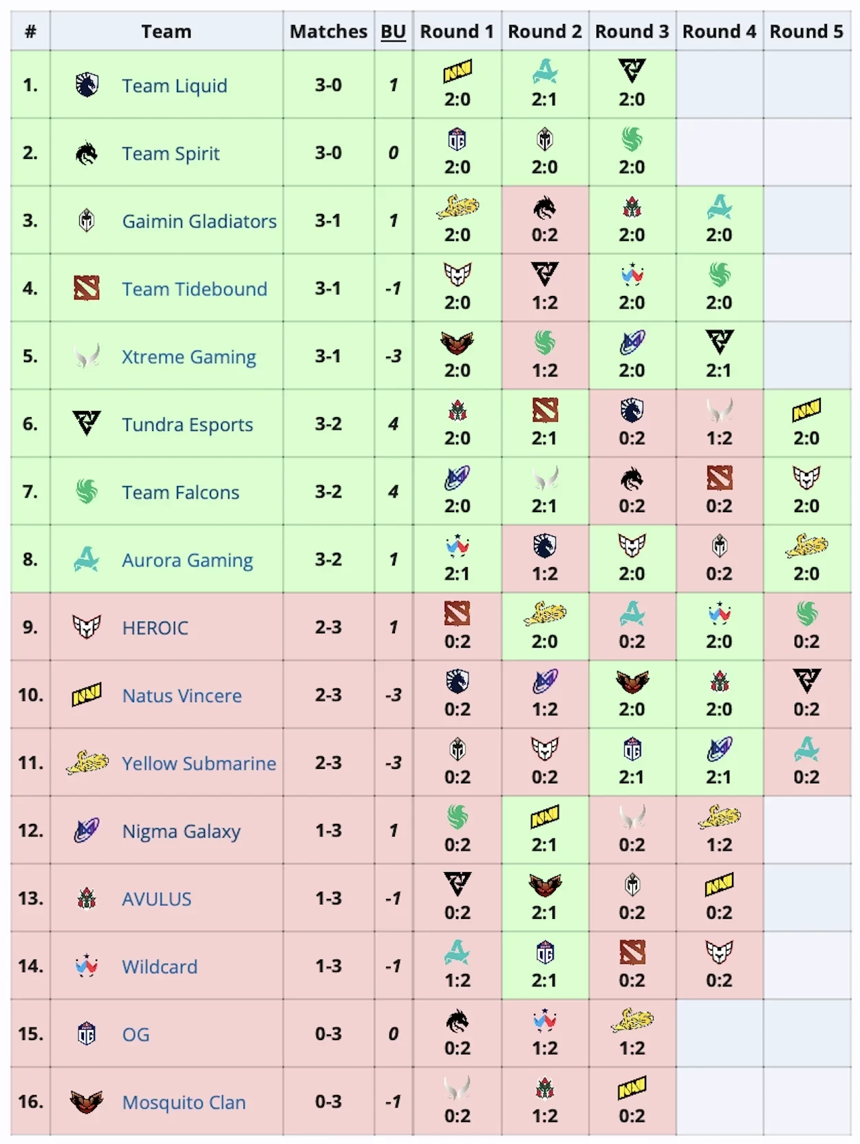 Aurora Gaming победила Yellow Submarine, Falcons обыграла HEROIC, а Tundra была сильнее Natus Vincere. Все матчи закончились со счетом 2:0. Все трое проигравших разделили 9-11 место и получили по 20 тыс долларов.