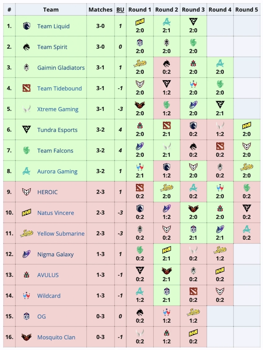 Также организаторы распределили команды на игровые пары к первому дню плей-офф. Team Tidebound сыграет с Xtreme Gaming, Team Liquid встретится с Aurora Gaming, Team Spirit сразится с Team Falcons, Gaimin Gladiators поборется Tundra Esports.