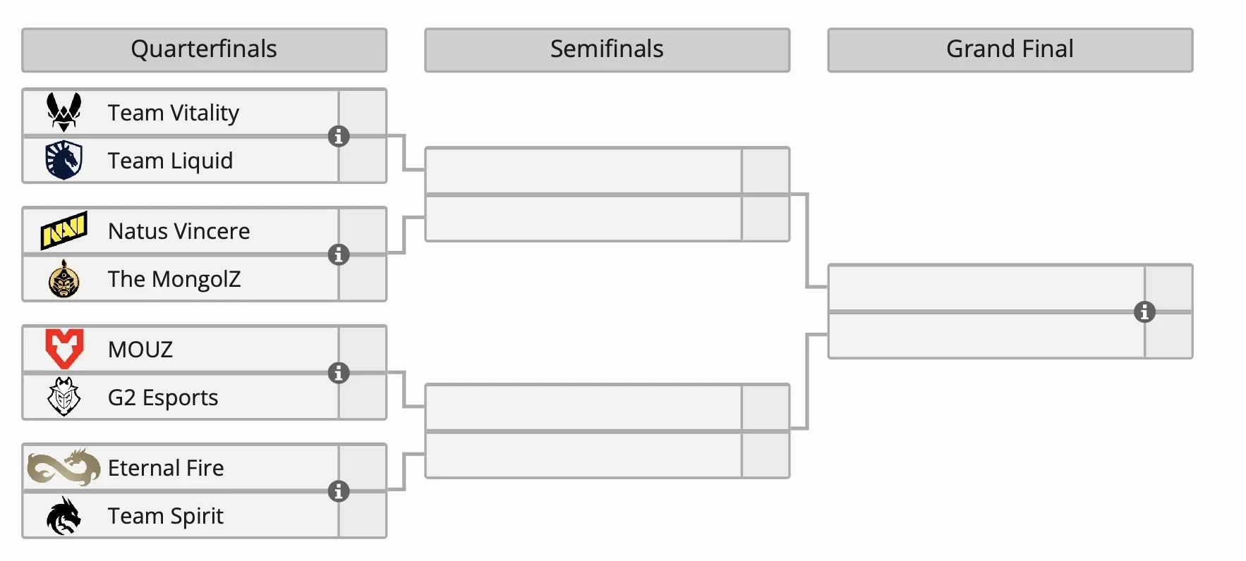 13 марта MOUZ встретится с G2 Esports, а Eternal Fire будет соперником Team Spirit. 14 марта Team Vitality сразится с Team Liquid, а Natus Vincere поборются с The MongolZ.