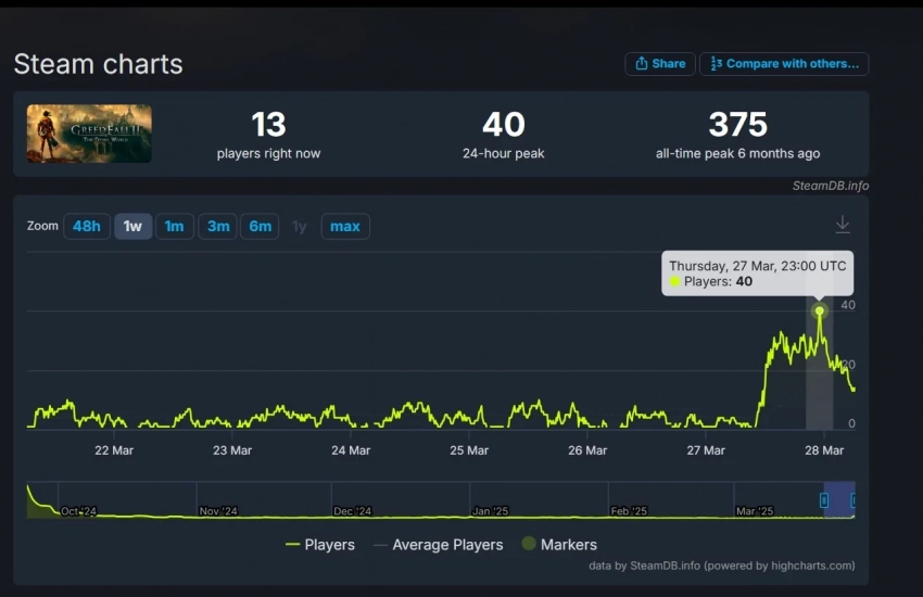 К сожалению, росту популярности самой GreedFall 2 обновление не помогло.