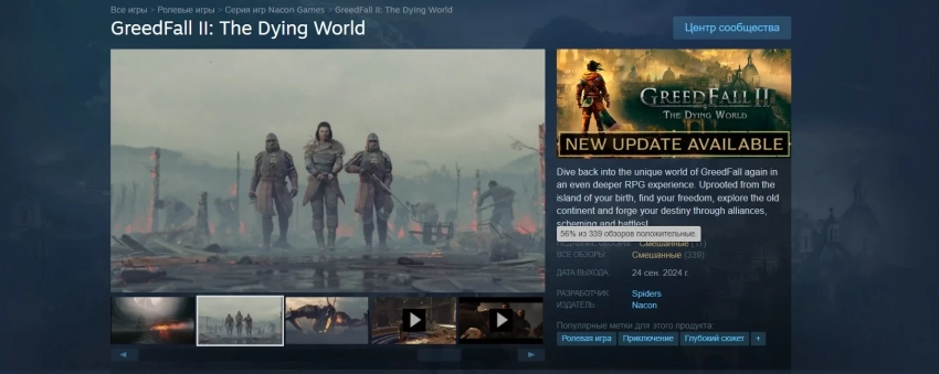 Что до отзывов GreedFall 2, то они всё ещё «смешанные». В основном игроки жалуются на стандартные «прелести» раннего доступа: бедное наполнение, кривоватое управление, баги, прихрамывающая оптимизация и т. д.