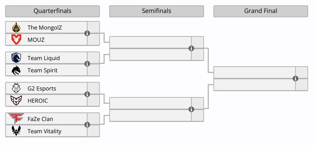Итак, полный список участников плей-офф: The MongolZ и MOUZ, Team Liquid и Team Spirit, G2 Esports и HEROIC, FaZe Clan и Team Vitality. Такими парами команды сыграют в четвертьфинале турнира 12 и 13 декабря.