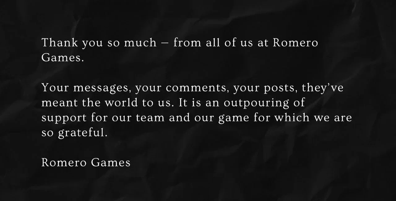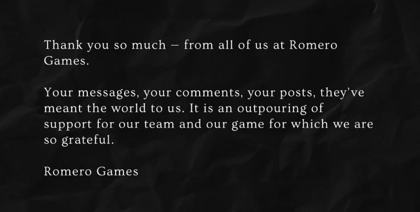Один из сотрудников Romero Games рассказал, что новости об увольнениях уже появлялись, но в студии считали, что их это не коснётся. Никаких предпосылок к этому не было. Работник утверждает, что дела у Romero Games шли хорошо и игра, над которой работала команда, была «хорошо проработана».