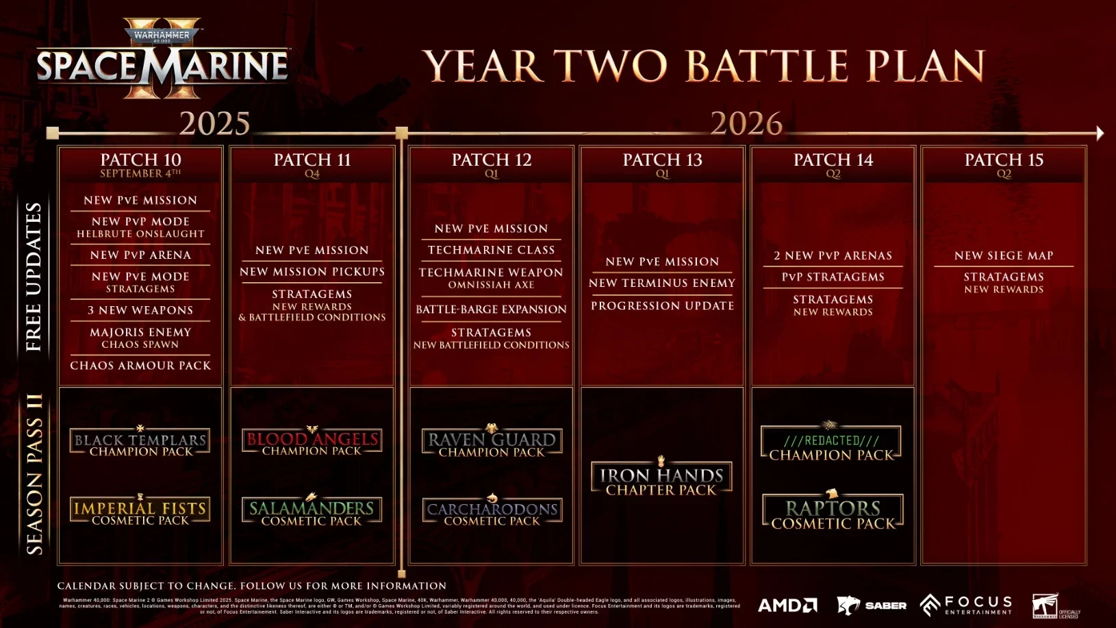 В рамках десятого патча появится PvE-режим Stratagems и комплект брони воинов Хаоса. Также в четвёртом квартале этого года выйдет 11 патч, в котором будут новые награды и PvE-операция.