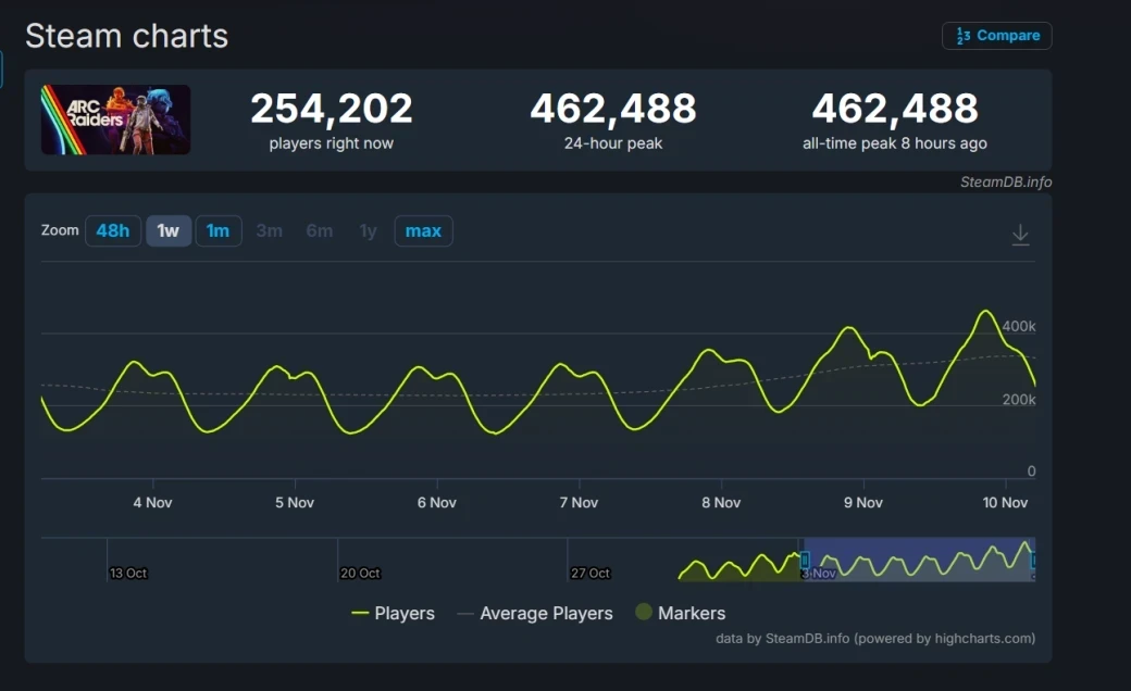 Если местная аудитория ARC Raiders продолжит расти, то она также сможет подвинуть Life is Strange 2 (468 717), Fallout 4 (472 962) и даже Call of Duty (491 670).