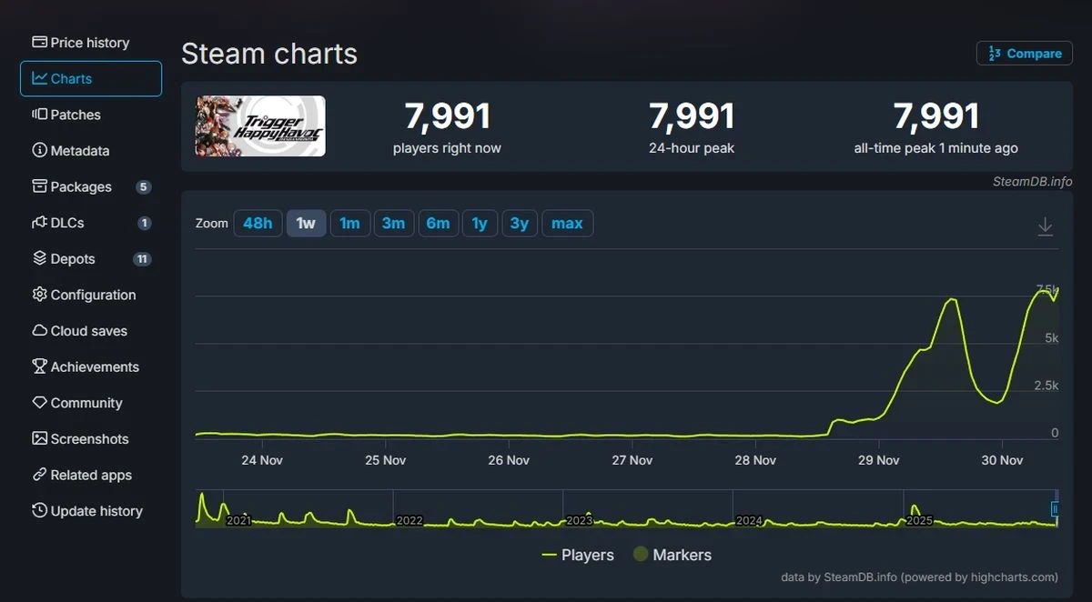 А игра тем временем обновила свой рекорд по пиковому онлайну в Steam — теперь он равен 7991 одновременных игроков. Причём велика вероятность того, что показатель вырастет в ближайшее время, поскольку он успел дважды обновиться лишь за время написание новости.