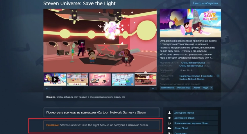 Официального заявления о «делистинге» не было. Ситуацию прокомментировала Grumpyface Games, студия создателей игр по Steven Universe.