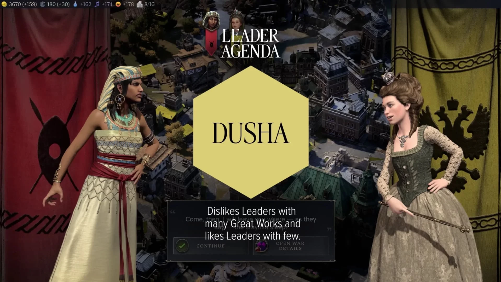 Известно, что отношения игроков с Екатериной будут зависеть от их количества Великих Произведений (чем меньше, тем лучше). К слову, её повестка называется «ДУША» («DUSHA»).