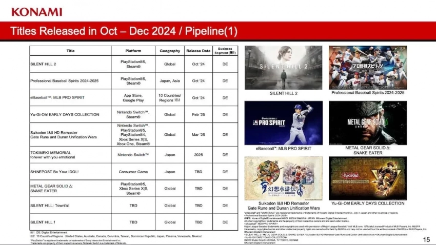 На рост прибыли повлиял не только успех ремейка SH2, продажи которого перевалили за 2 млн копий. Хорошо себя показали и спортивные игры компании — в частности, речь идёт про eBaseball: MLB Pro Spirit и Professional Baseball Spirits 2024-2025. Число загрузок eFootball перевалило за 800 млн на разных платформах.