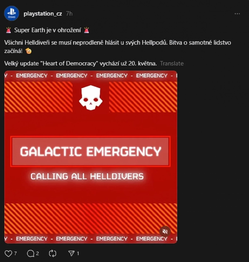 Но, похоже, это ещё не всё. Официальный чешский аккаунт PlayStation опубликовал в соцсетях информацию о грядущем обновлении для Helldivers 2 — Heart of Democracy — с релизом 20 мая.
